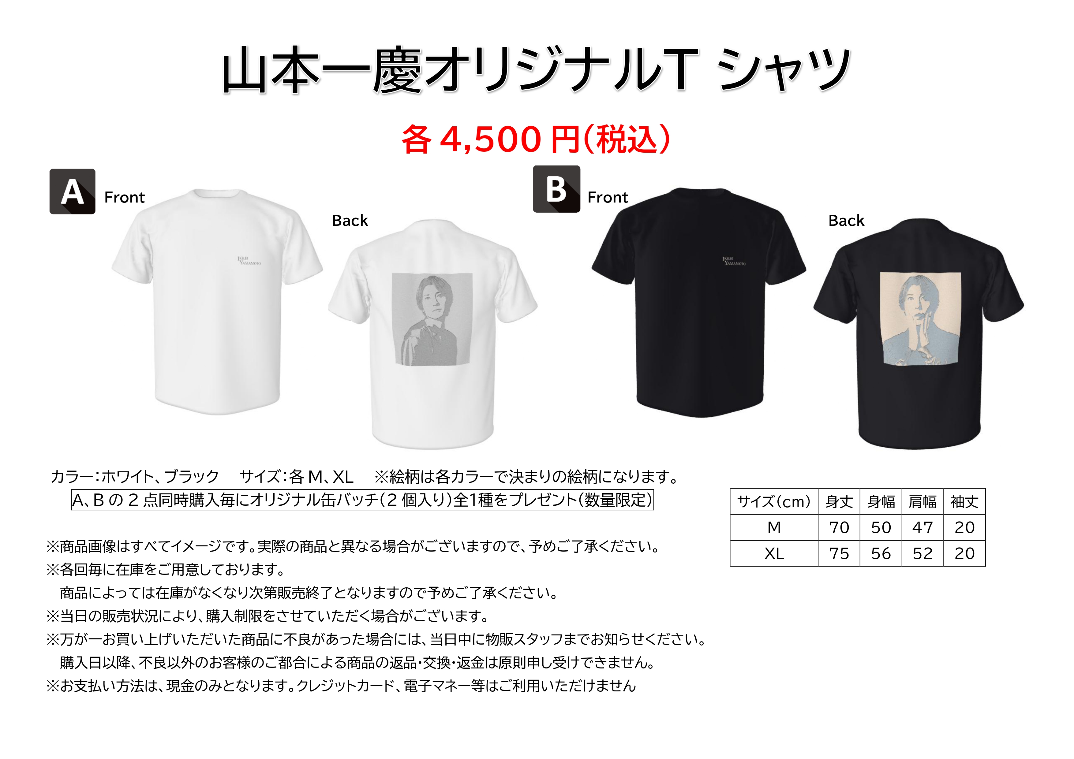 ・オリジナルTシャツ 全2種 各4,500円(税込)